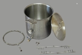 Котел выполнен из высококачественной нержавеющей пищевой стали, оснащен штуцером под установку электронного термометра, штуцером установки фильтратора, краном для слива сусла. Двойное, "толстое" дно позволяет наревать котел любым способом - на газу, на электроплитке, на индукции. Нагрев паром также легко доступен - пар подается через фильтратор для сусла, который в данном случае становится барботером.