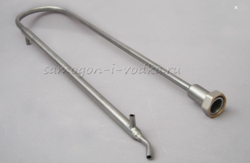 Дополнительная малая трубка, расположенная у выхода готового продукта - это ТСА (трубка связи с атмосферой). Предназначена она для уравнивания давления в системе с атмосферным давлением, при работе она должна быть открыта. При этом трубка для отвода жидкости в приемную емкость не должна быть опущена в жидкость.